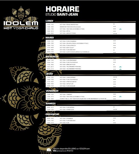 Fantastic experience: J'adore tous les Idolem! Depuis plusieurs années que je suis leurs cours, dans plusieurs studios et ils sont toujours parfaits! Les professeurs de yoga ont chacun leur style mais sont toujours accueillants et professionnels, avec des routines "challenging" et intéressantes et sont disponibles après les cours pour répondre aux questions et recevoir les commentaires! Il y a aussi une belle variété de cours, du plus calme/zen (comme le yin) au plus difficile et actif (comme les cours Flow et Power). Il y a souvent des ateliers intéressants pour approfondir la technique ou essayer des nouveaux style de yoga. J'adore que presque tous les cours sont au chaud; je me rend plus loin dans mes postures et dès que je rentre dans la salle, la chaleur me relax instantanément! Au début je trouvais que c'était vraiment cher, mais avec les bienfaits de la salle chaude, le choix de cours intéressants, l'accès à tous les studios (il y en a plusieurs sur la Rive-Sud, Montréal, Côte-Nord) et les profs magnifiques, je trouve que ça vaut vraiment la peine, dans mon expérience!
