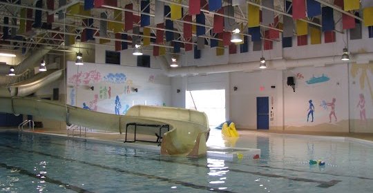 Expérience fantastique: Water slide, whirlpool, hot tub, water polo nets, beach area for babies, rope swing, rock climbing wall, diving board, free splash park in the summer, and the list goes on! The facility is very clean and gym can get very warm in the summer.